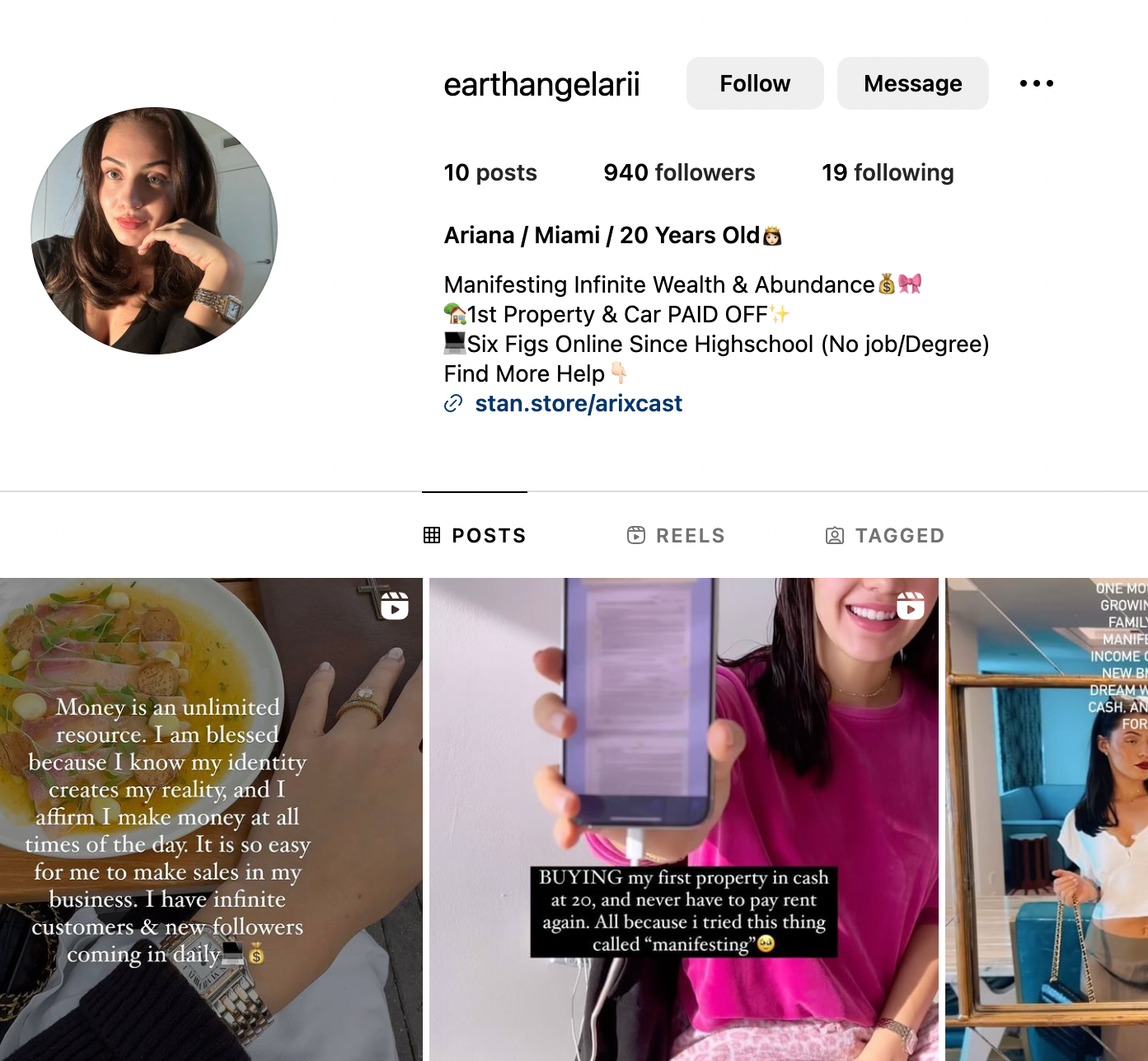 At 20 she has manifested retirement after purchasing her dream property in Miami in CASH, paying off her brand new BMW, and having all her bills paid a year in advance!